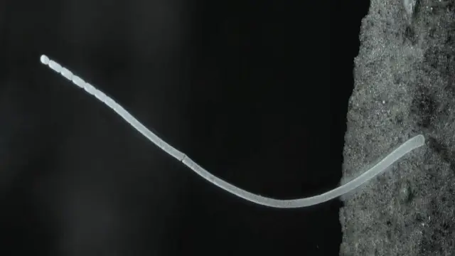 Unlike most bacteria that divide evenly to reproduce, this organism grows as a long filament and reproduces by budding small daughter cells from its tip. These small cells can then disperse and start new filaments, a strategy more similar to multicellular development than typical bacterial fission.